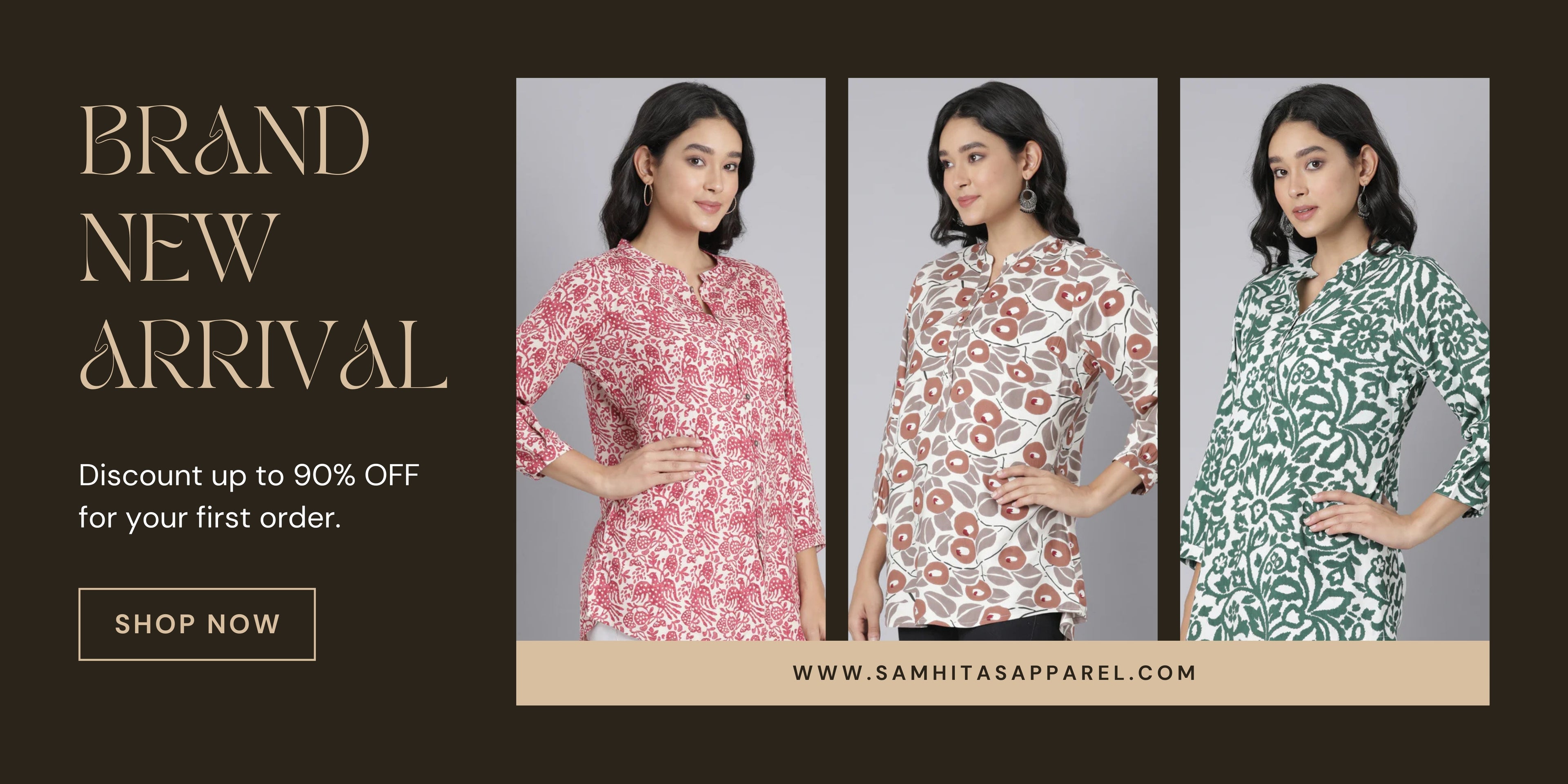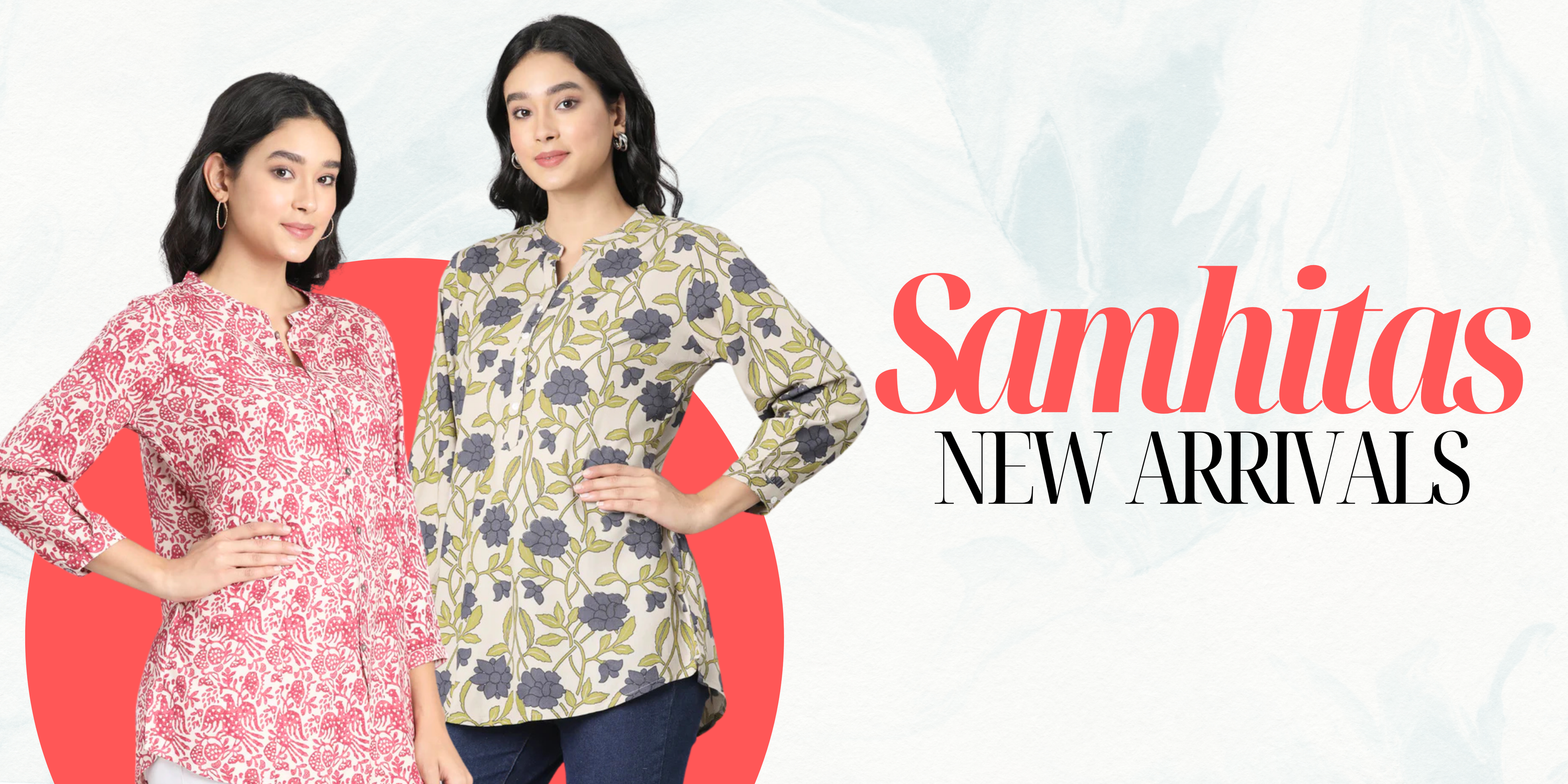 Blush Garden Notch Neck Short Kurti with Pink & Blue Floral Print