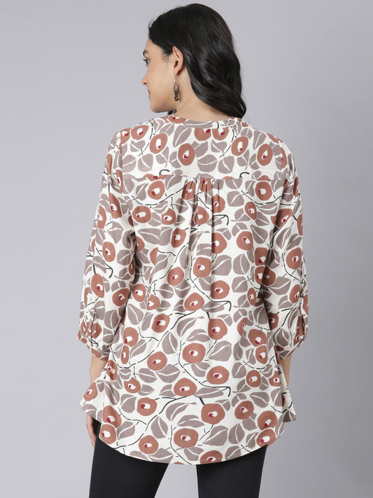 Women's Beige & Rust Floral Print A-Line Short Kurti