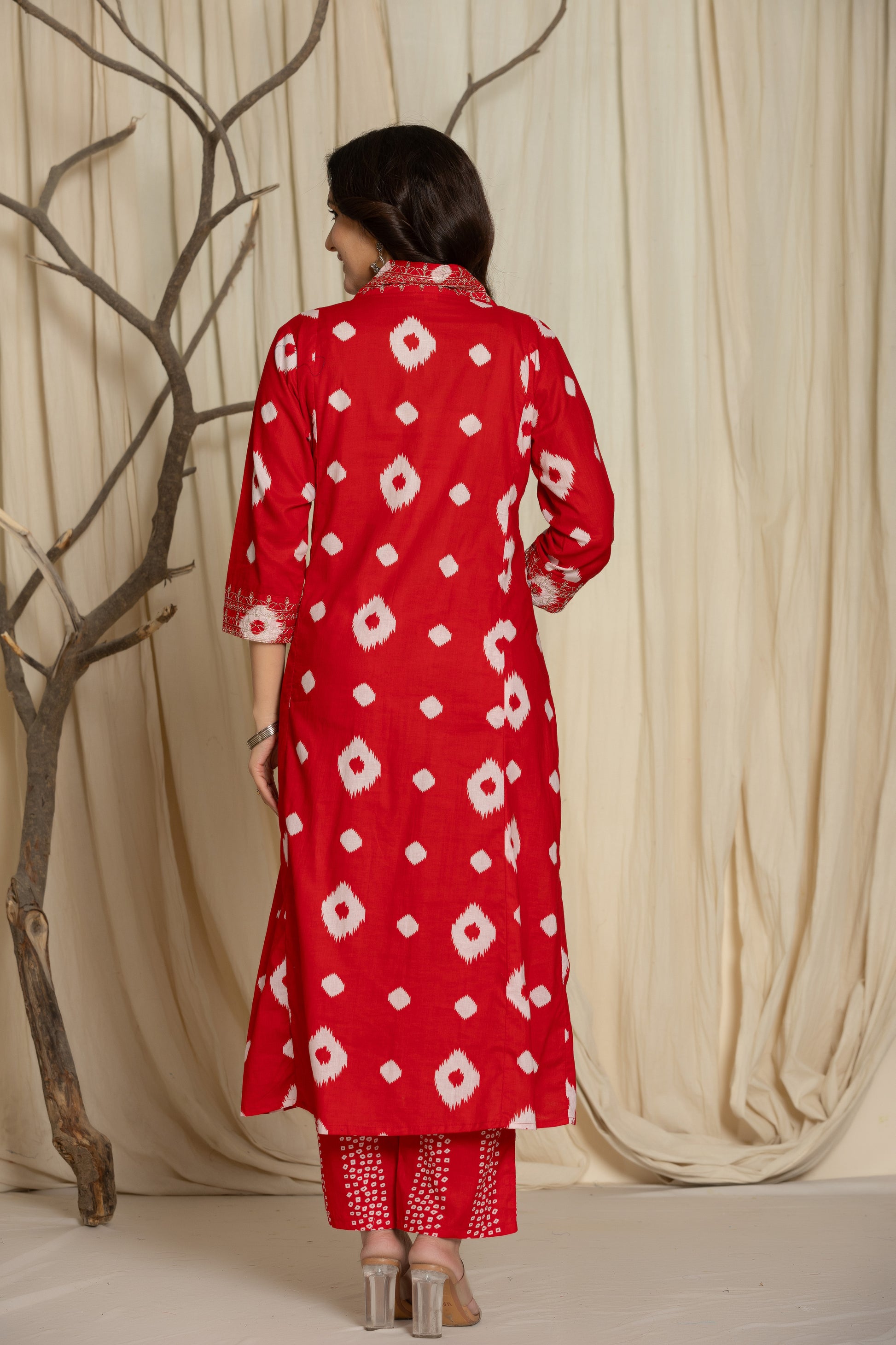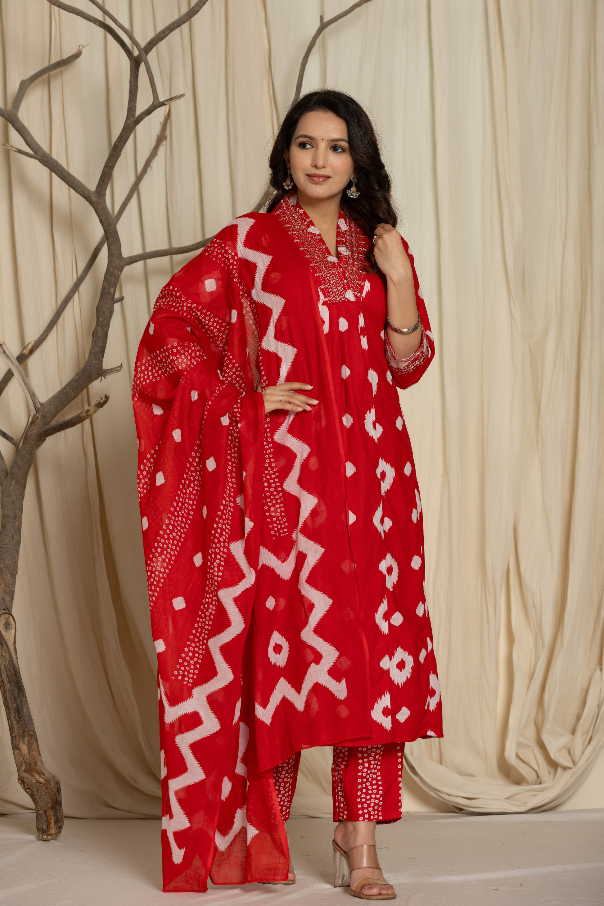 Beautiful Pink Prosin Print Suit Set with Lace At Neck