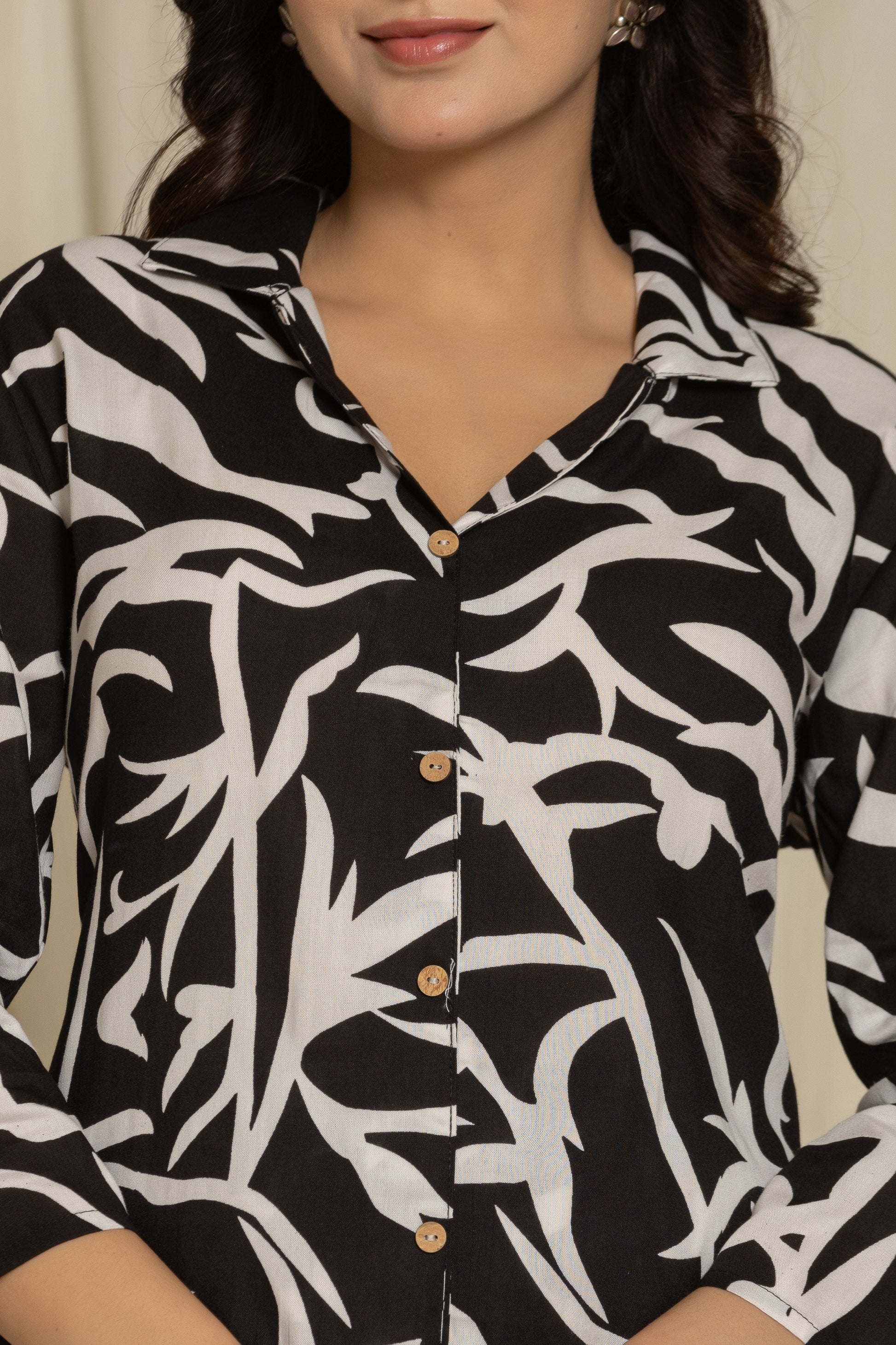Elevate your wardrobe with this chic Black Cotton Printed A-Line Cord Set for Women. Designed to blend comfort with style, this outfit is perfect for casual outings, festive celebrations, or relaxed evenings.