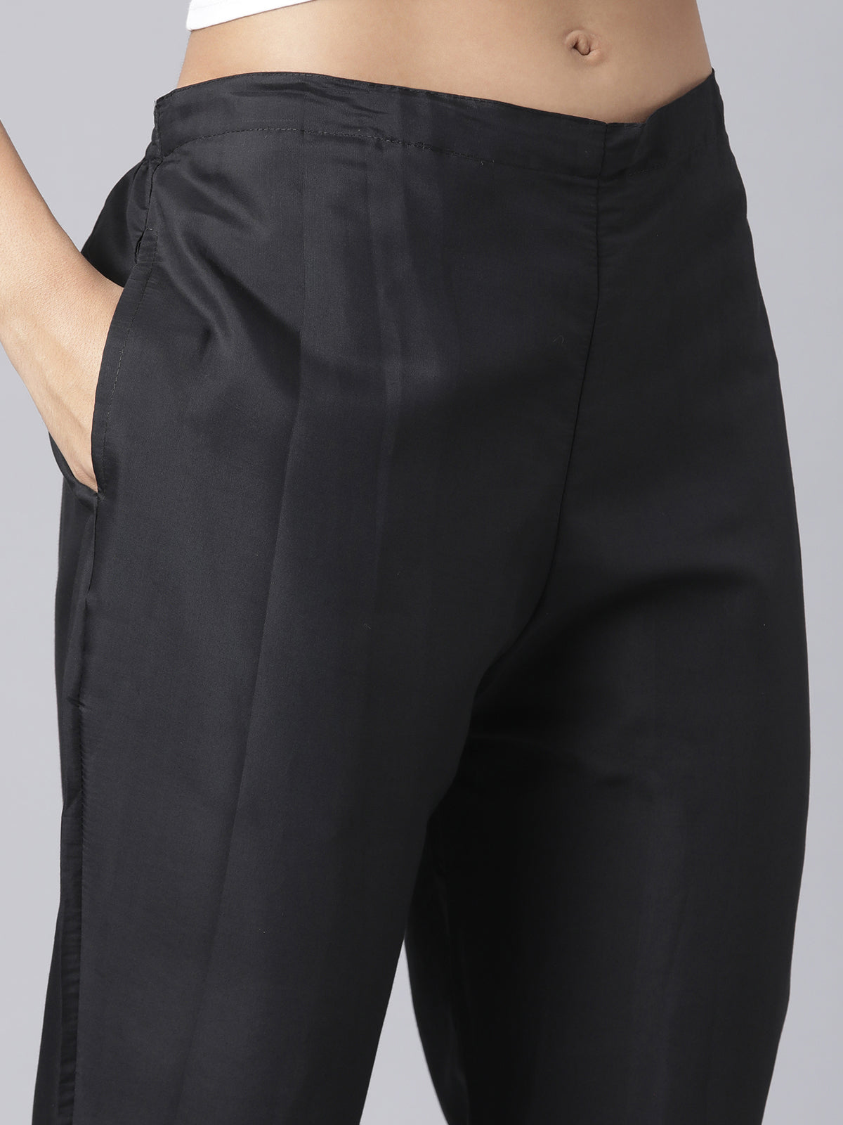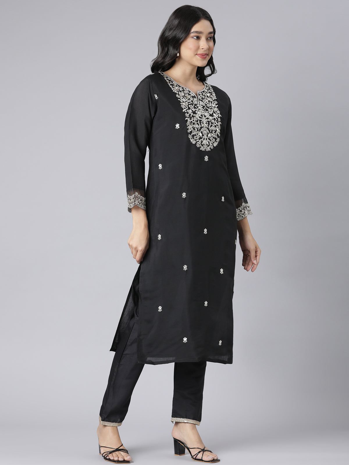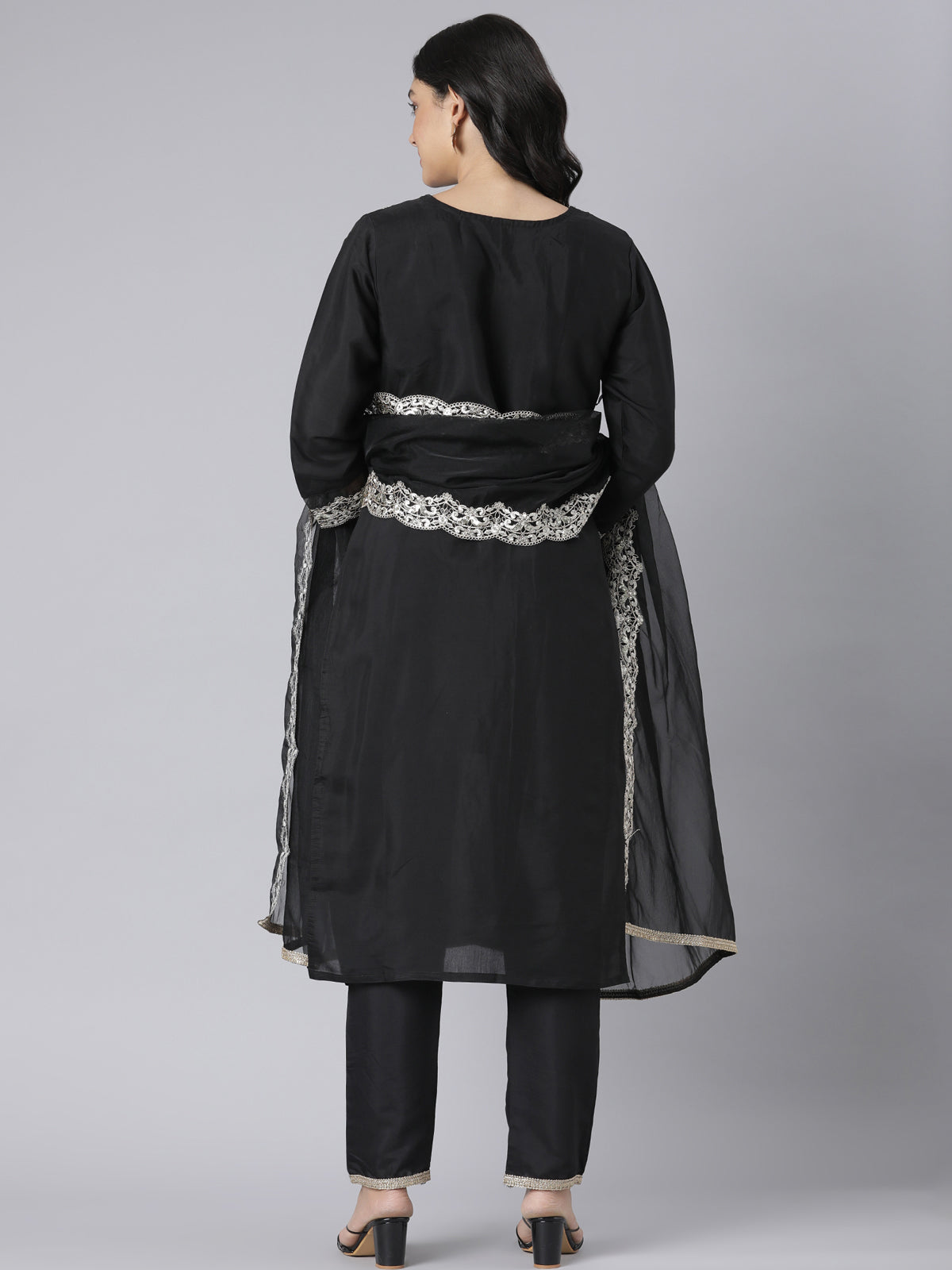 Black Floral Embroidered Kurta Set with Silver Threadwork and Organza Dupatta