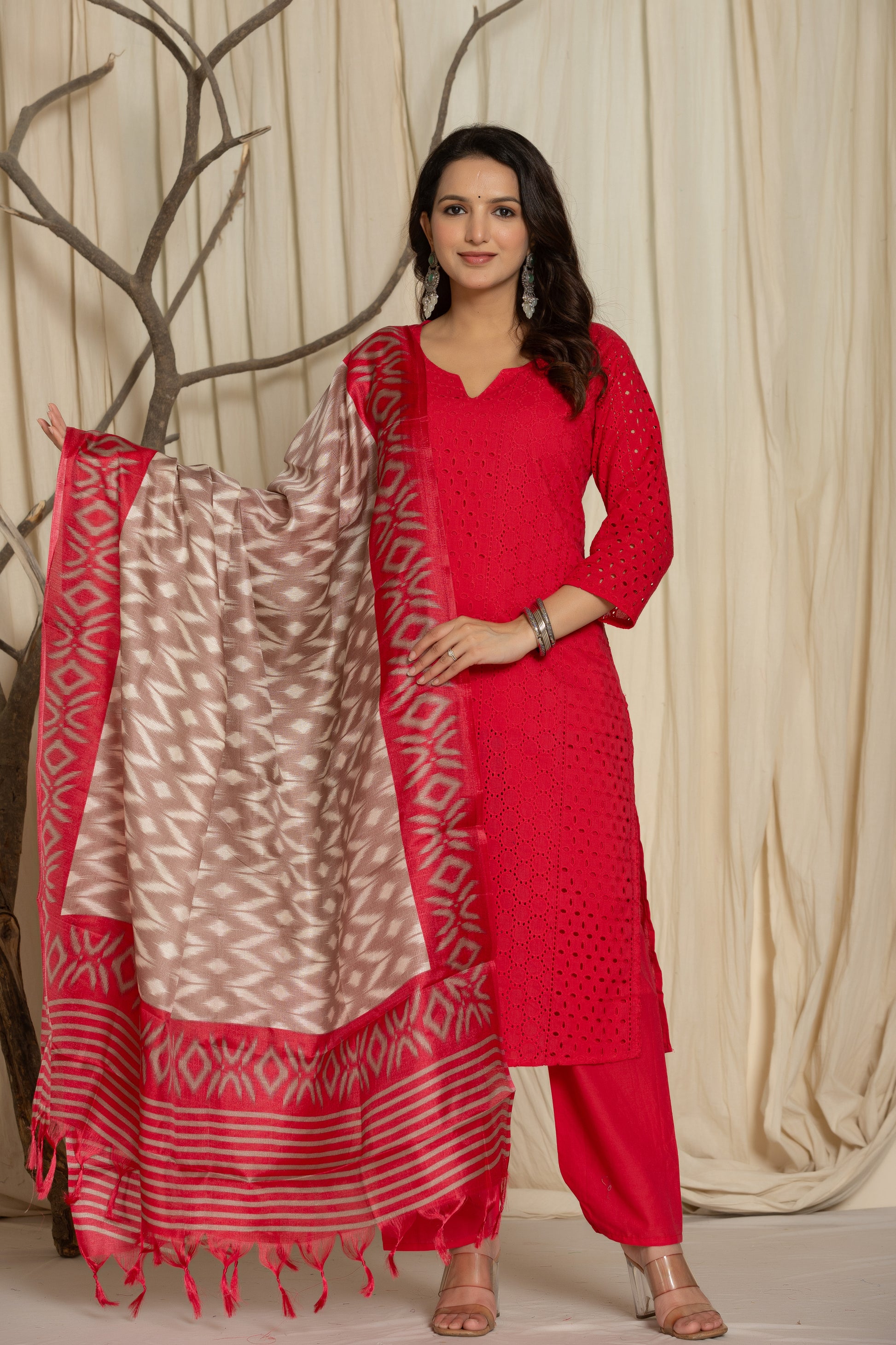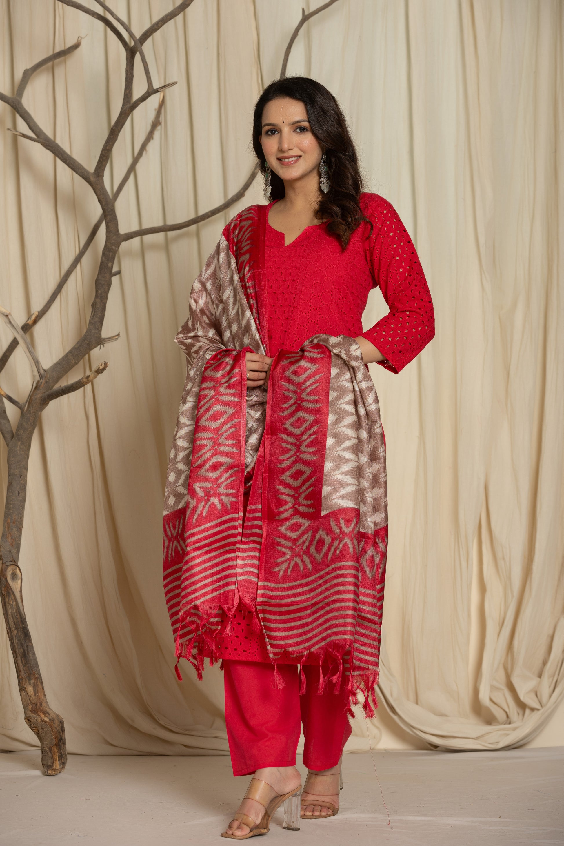 Elegant Pink Chikankari Suit with Matching Pants and Printed Dupatta