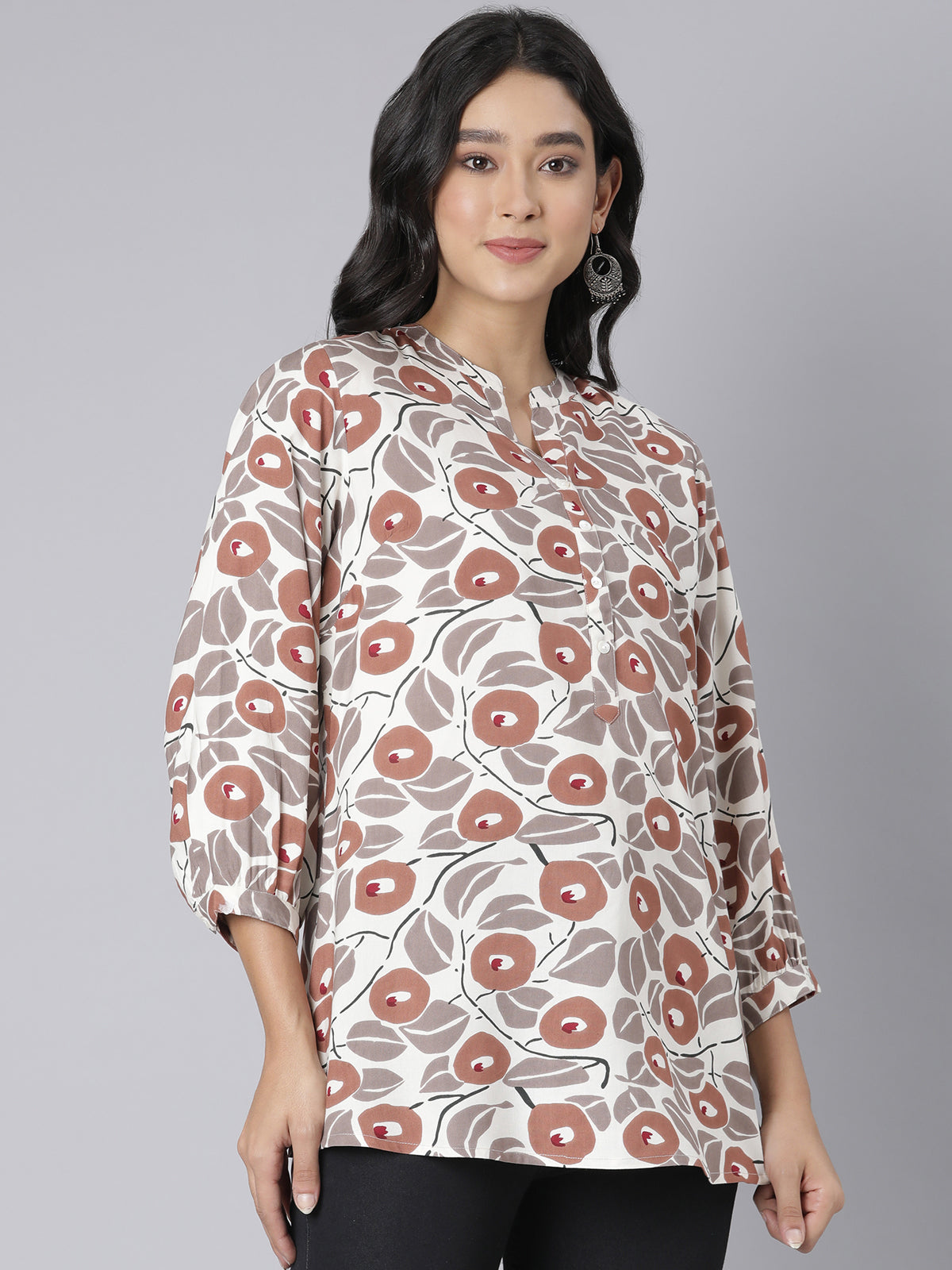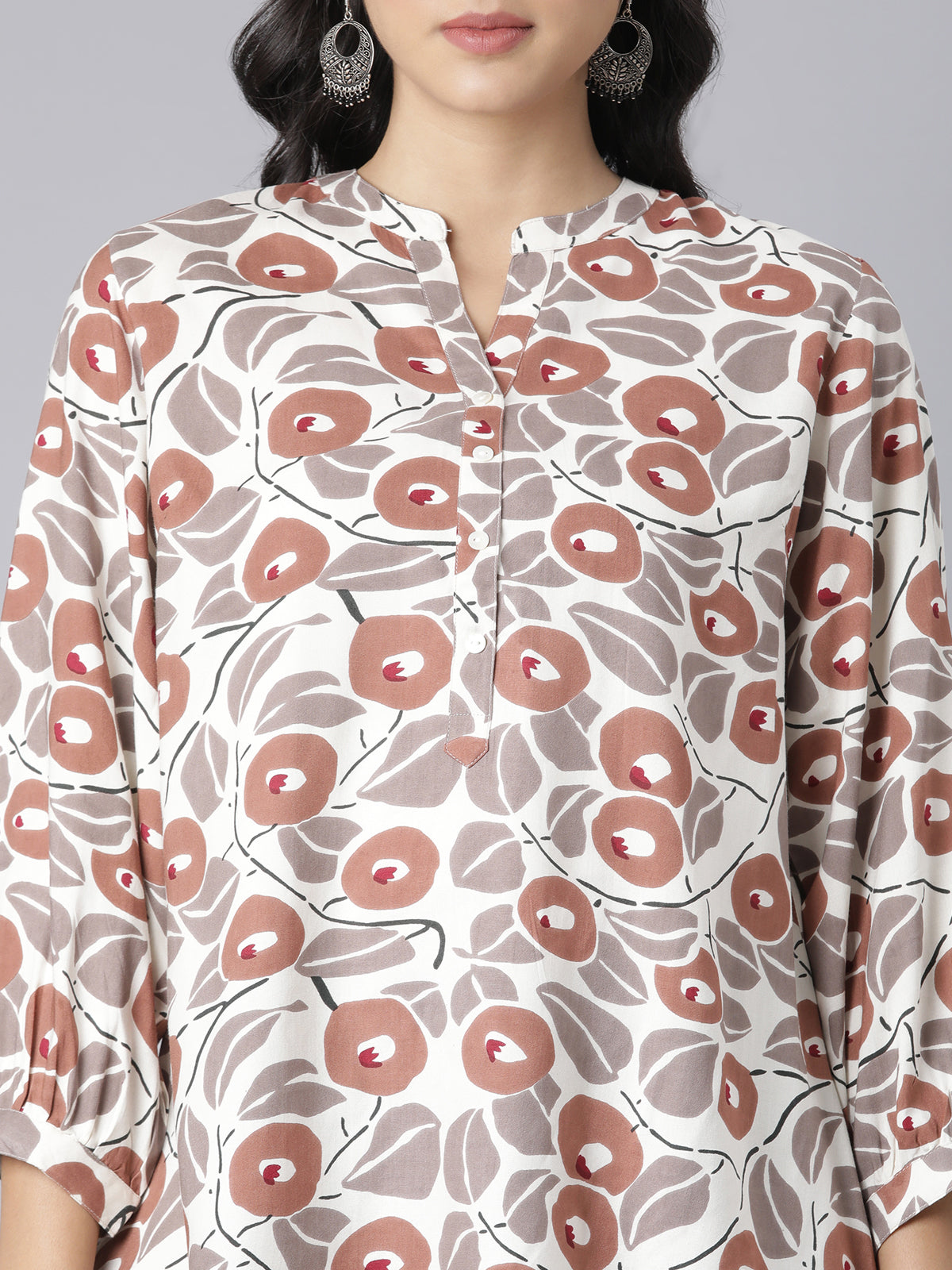 Women's Beige & Rust Floral Print A-Line Short Kurti